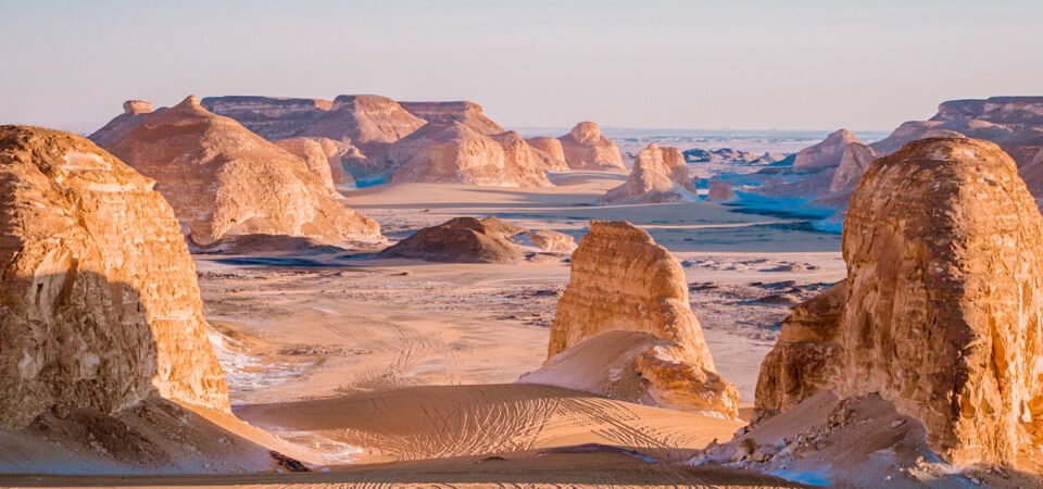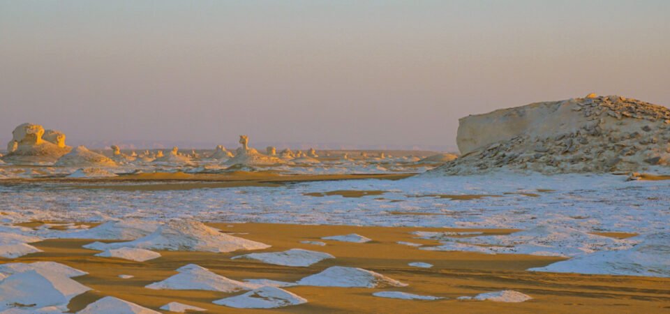 You will walk to explore Jabal Al-Marsous (The Divided Mountain), then drive towards the small Bedouin village of Al-Hiz, then make your way to the White Desert 160 km on/off the road, you will stop at Jabal Al-Kristal and forests of the Sharqiya, the Acacia Tree, pass through the sands of the White Desert with its creamy, chalky landscape, and wind-carved mushroom-shaped formations that resemble human and animal faces.